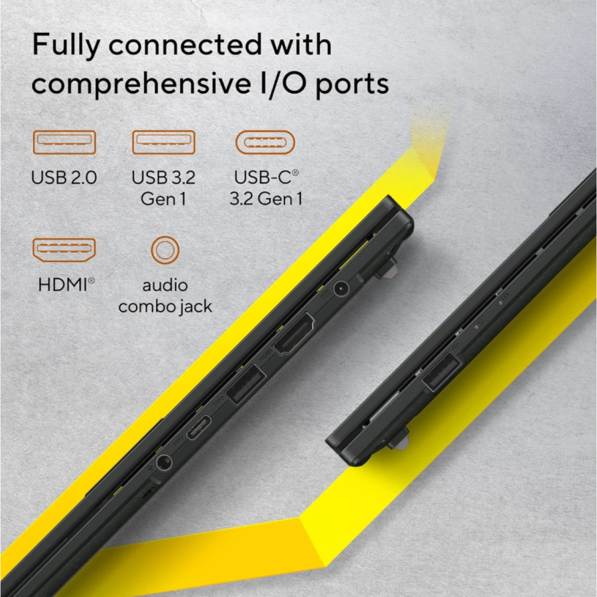 Ports | USB 3.2, USB 2.0, HDMI, RJ-45, and 3.5mm combo audio jack. |