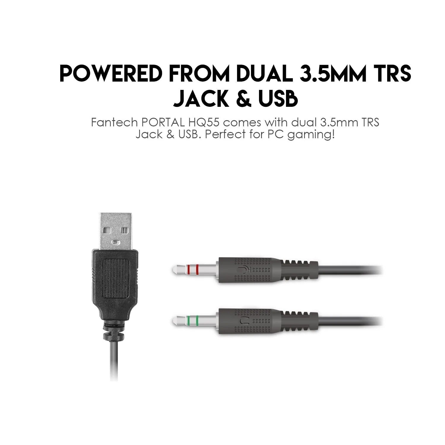 Short Description: The Fantech Portal HQ55 combines lightweight comfort, premium leatherette ear cushions, on-headset volume control, and vibrant circular RGB lighting for an enhanced gaming experience.