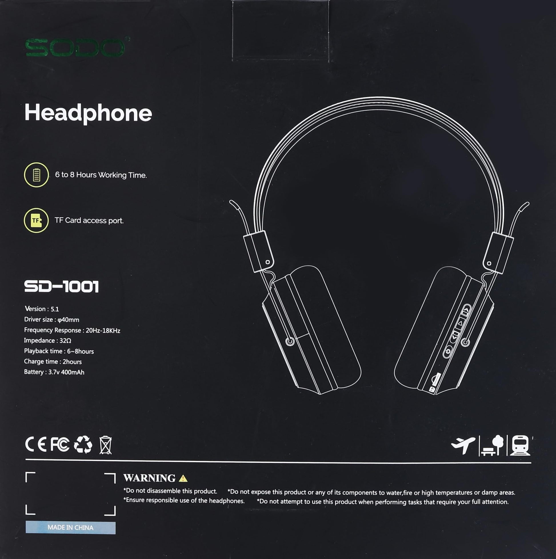 Short Description: Enjoy premium wireless sound with the SODO SD-1102 Bluetooth headset. Designed for comfort and style, it features deep bass, a built-in microphone, and multiple playback options including SD card and AUX input.
